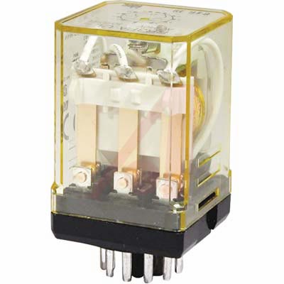 Idec - RR3P: Relay រ៉ីឡេ ប្រភេទធំ, 3 បង្គោល, Imax = 10A, 8 ជើងជុំ រួមមានភ្លើងពីរប្រភេទនិងគ្មានពន្លឺនៅកម្រិតវ៉ុលច្រើន។