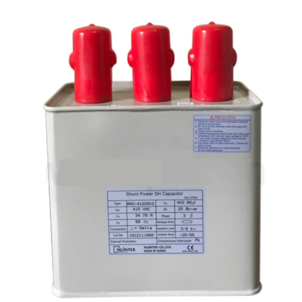 Capacitor Nuintek KNE-4438226S : ប្រភេទស្ងួត 3P 50Kvar 440V 50HzCapacitor Nuintek ANU-41230KS : កុងដុងជ្រុង 3P 30Kvar 415V 50Hz